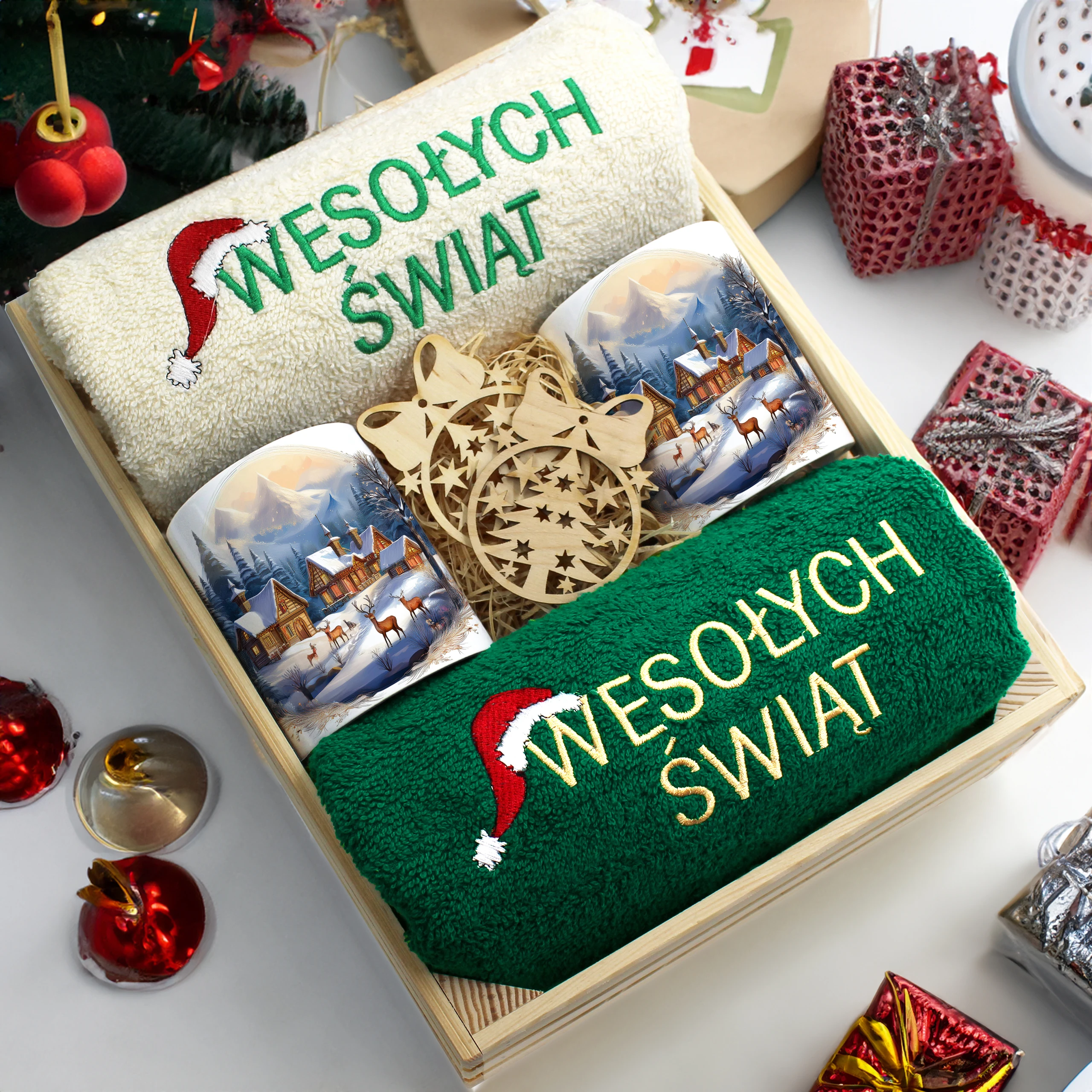Każdy zestaw ręczników wraz z kubkami jest zapakowany w folię - celofan - zestaw tworzy gotowy prezent do podarowania bez potrzeby dalszego pakowania.