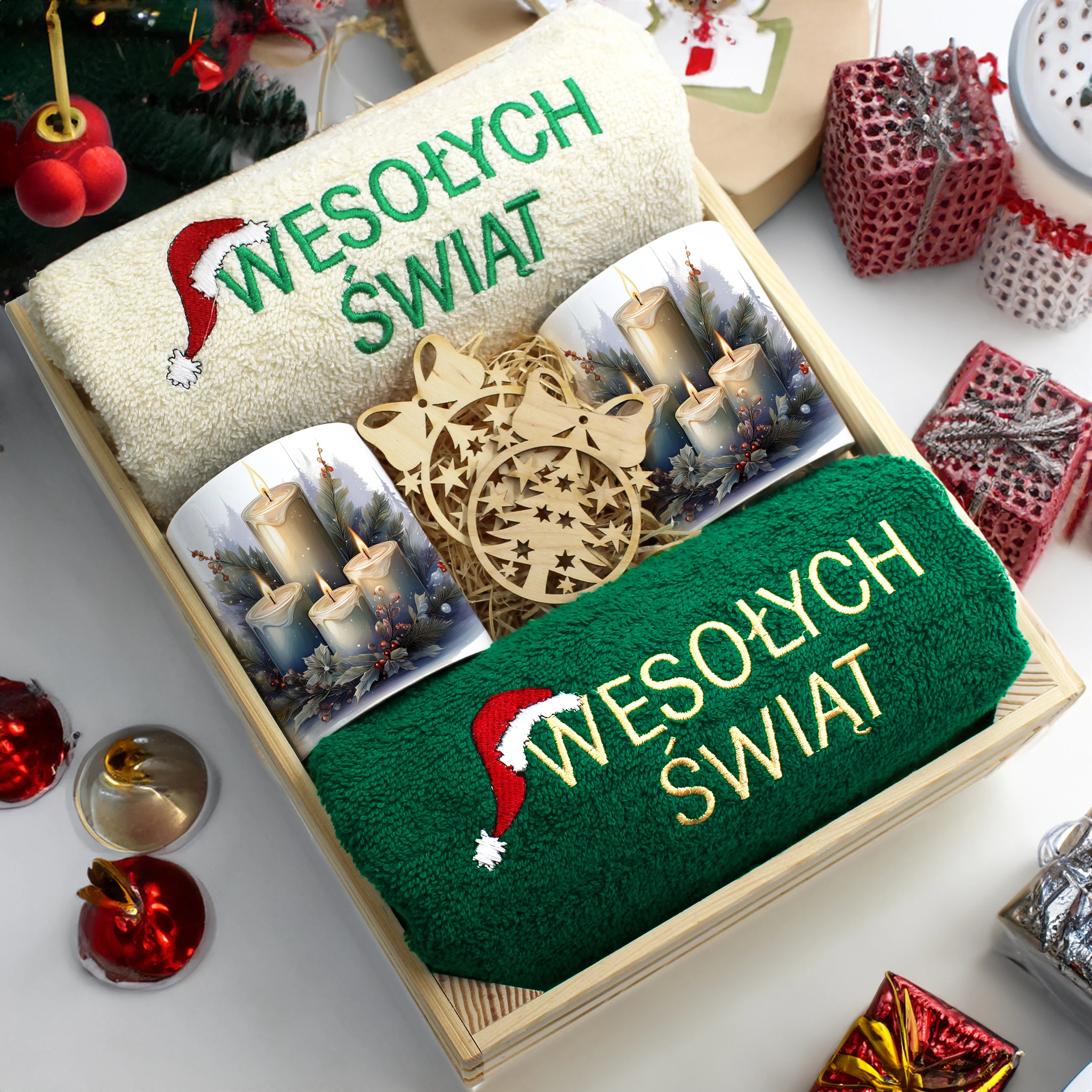 Każdy zestaw ręczników wraz z kubkami jest zapakowany w folię - celofan - zestaw tworzy gotowy prezent do podarowania bez potrzeby dalszego pakowania.