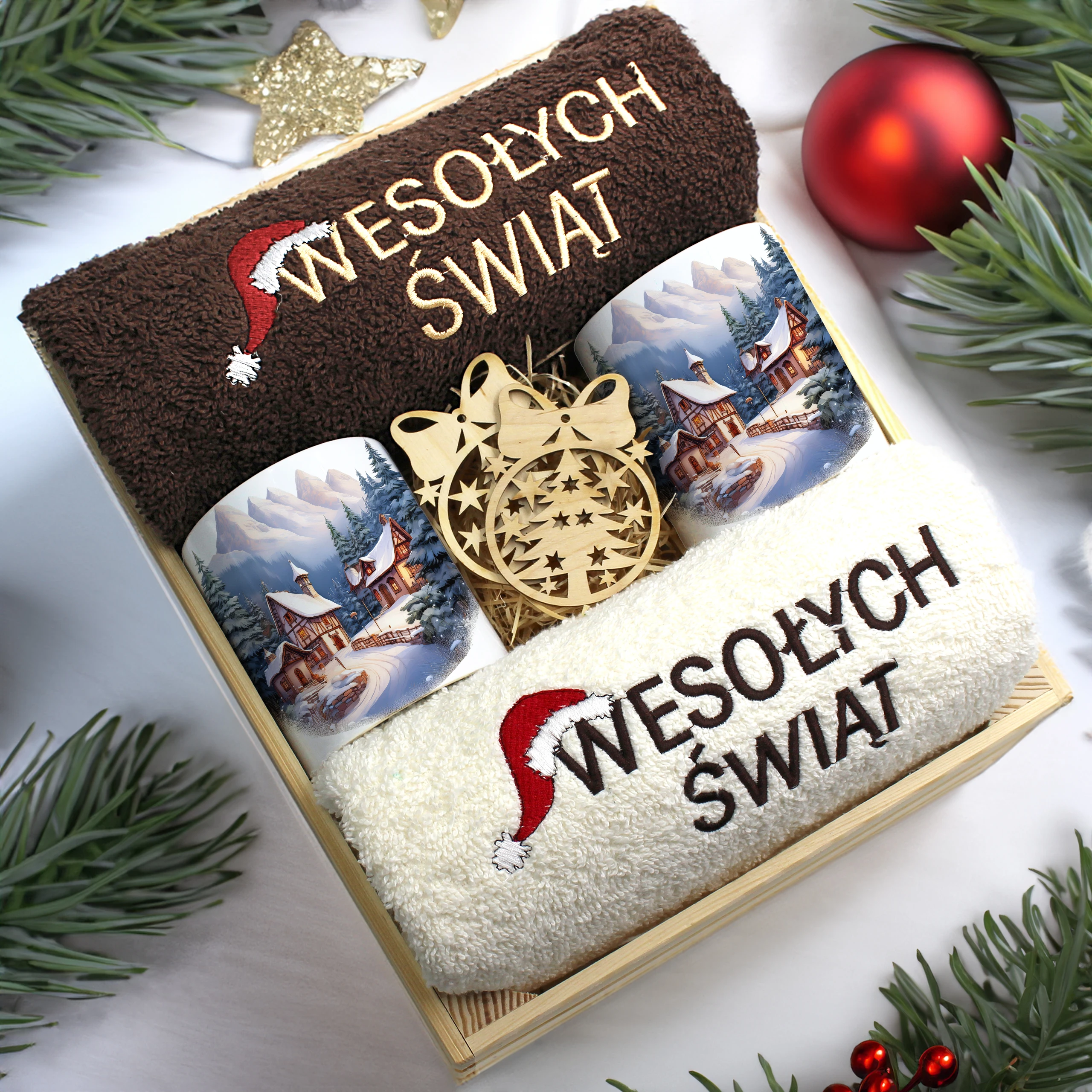 Każdy zestaw ręczników wraz z kubkami jest zapakowany w folię - celofan - zestaw tworzy gotowy prezent do podarowania bez potrzeby dalszego pakowania.