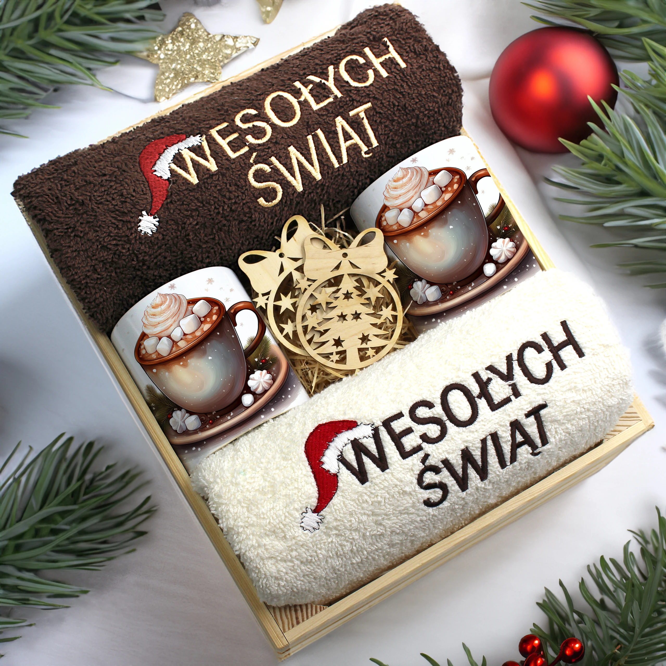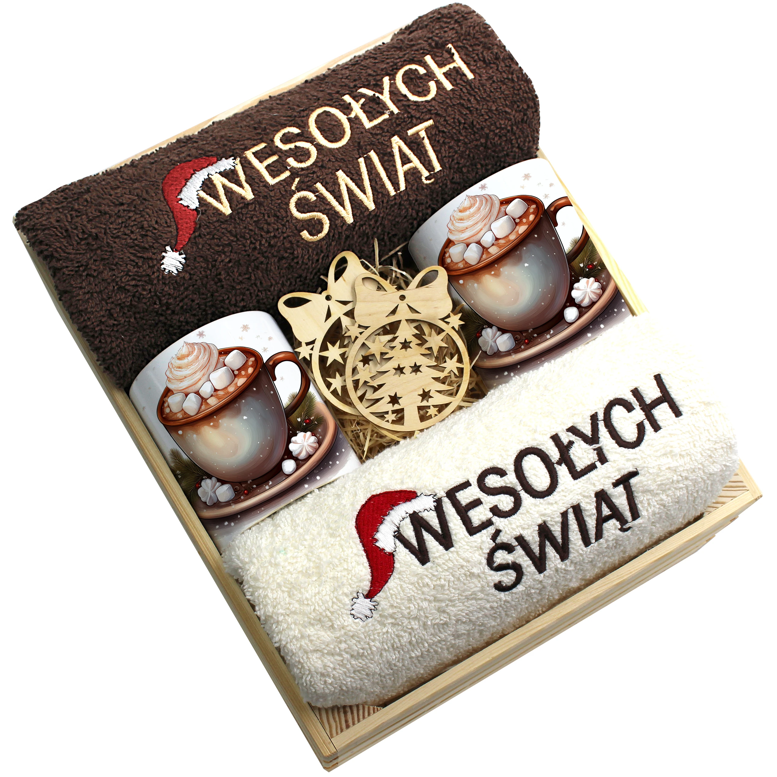 Każdy zestaw ręczników wraz z kubkami jest zapakowany w folię - celofan - zestaw tworzy gotowy prezent do podarowania bez potrzeby dalszego pakowania.