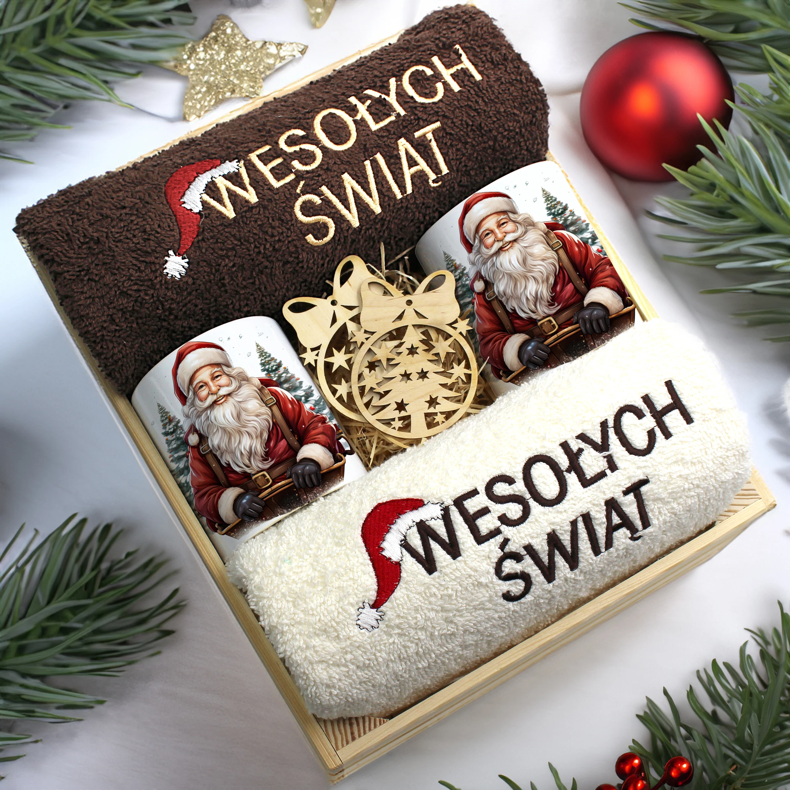 Każdy zestaw ręczników wraz z kubkami jest zapakowany w folię - celofan - zestaw tworzy gotowy prezent do podarowania bez potrzeby dalszego pakowania.