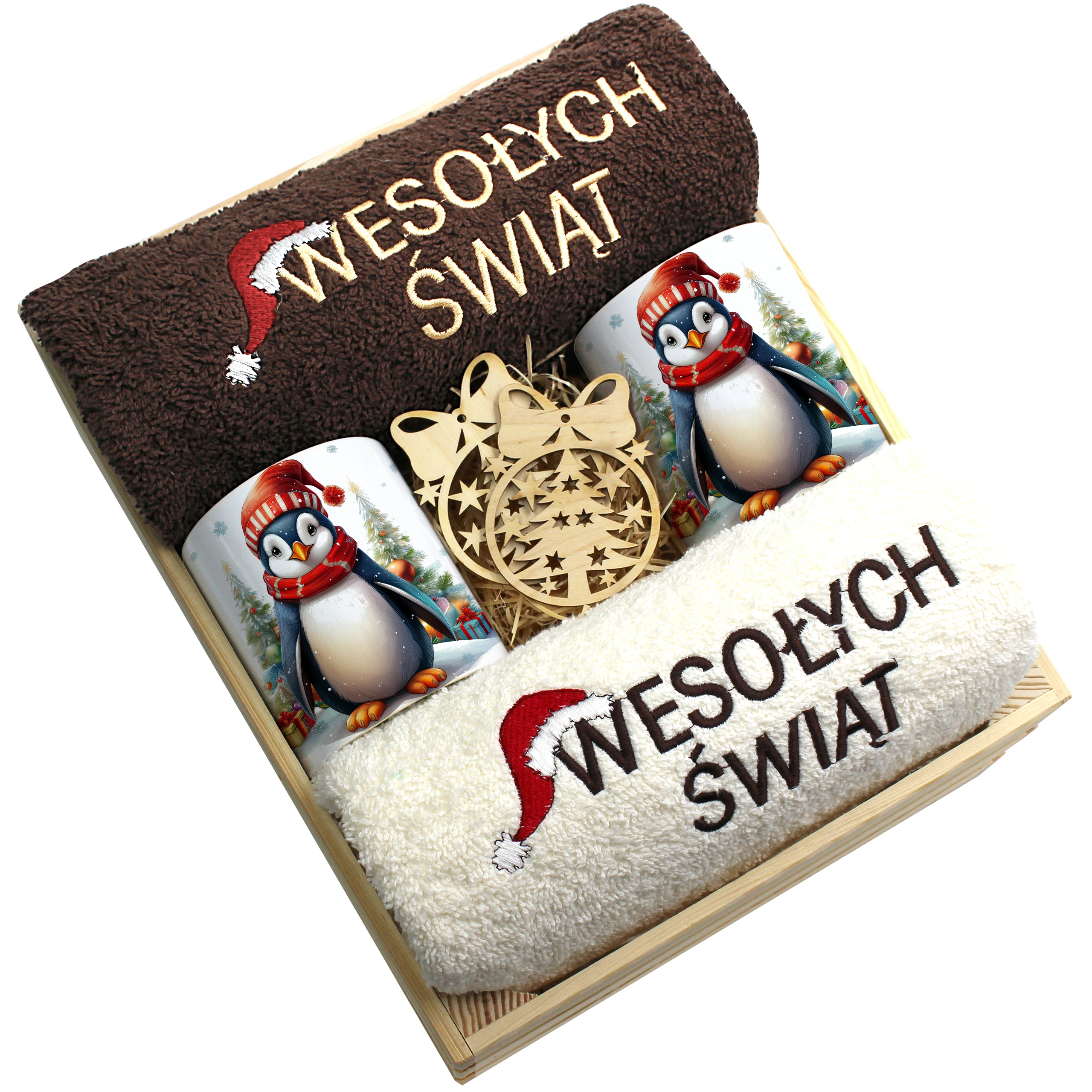 Każdy zestaw ręczników wraz z kubkami jest zapakowany w folię - celofan - zestaw tworzy gotowy prezent do podarowania bez potrzeby dalszego pakowania.