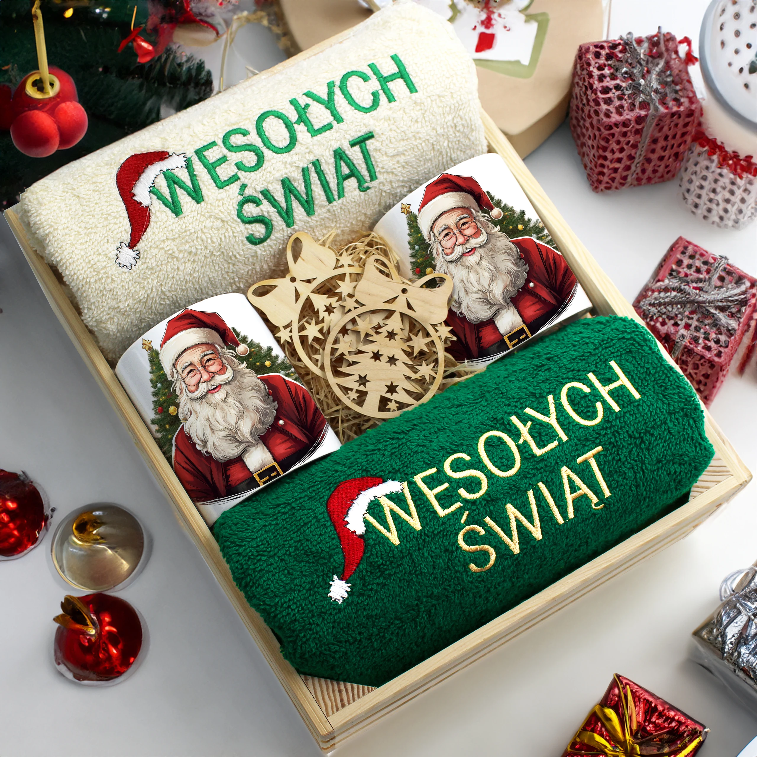 Każdy zestaw ręczników wraz z kubkami jest zapakowany w folię - celofan - zestaw tworzy gotowy prezent do podarowania bez potrzeby dalszego pakowania.