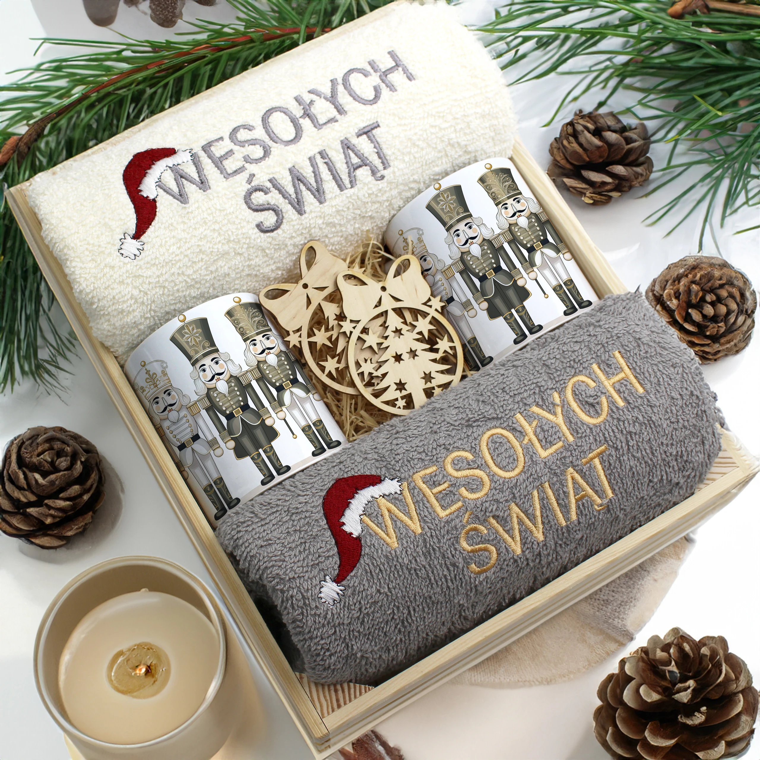 Każdy zestaw ręczników wraz z kubkami jest zapakowany w folię - celofan - zestaw tworzy gotowy prezent do podarowania bez potrzeby dalszego pakowania.