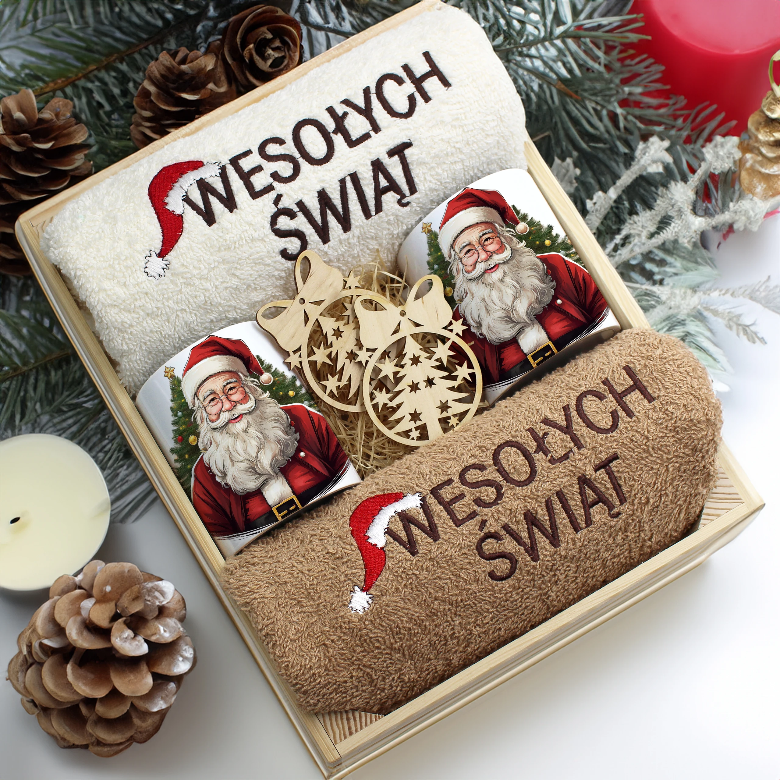 Każdy zestaw ręczników wraz z kubkami jest zapakowany w folię - celofan - zestaw tworzy gotowy prezent do podarowania bez potrzeby dalszego pakowania.