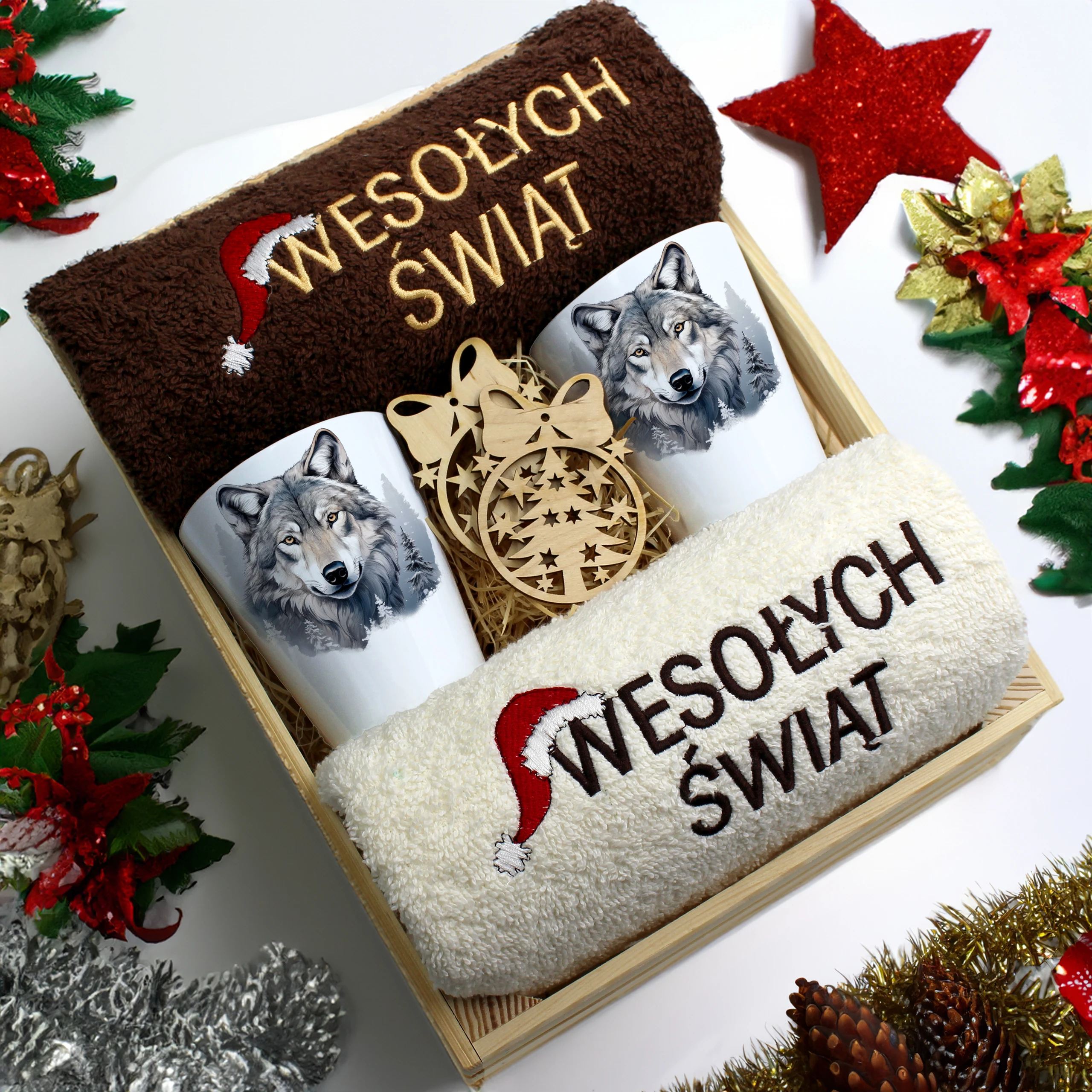 Każdy zestaw ręczników wraz z kubkami jest zapakowany w folię - celofan - zestaw tworzy gotowy prezent do podarowania bez potrzeby dalszego pakowania.