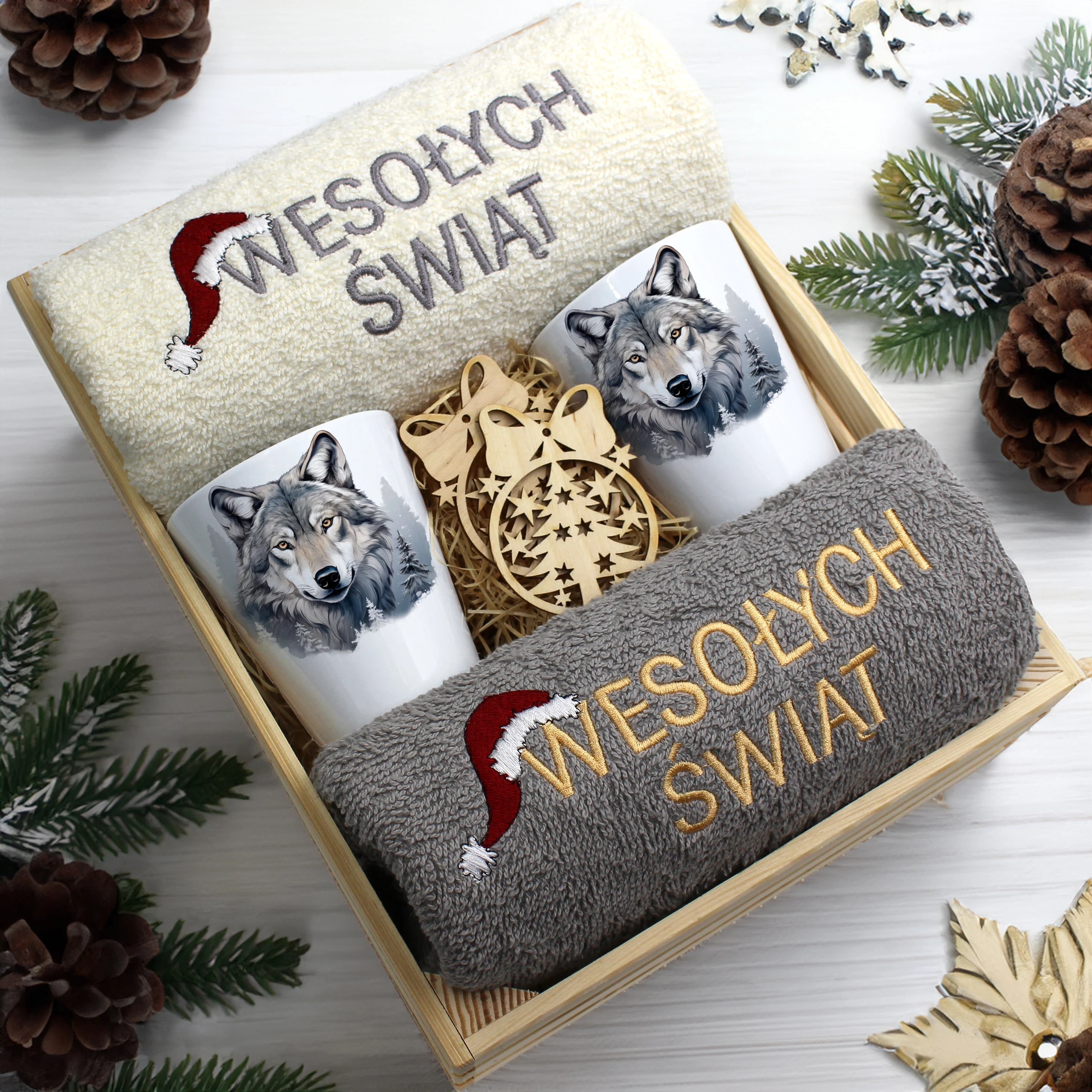 Każdy zestaw ręczników wraz z kubkami jest zapakowany w folię - celofan - zestaw tworzy gotowy prezent do podarowania bez potrzeby dalszego pakowania.