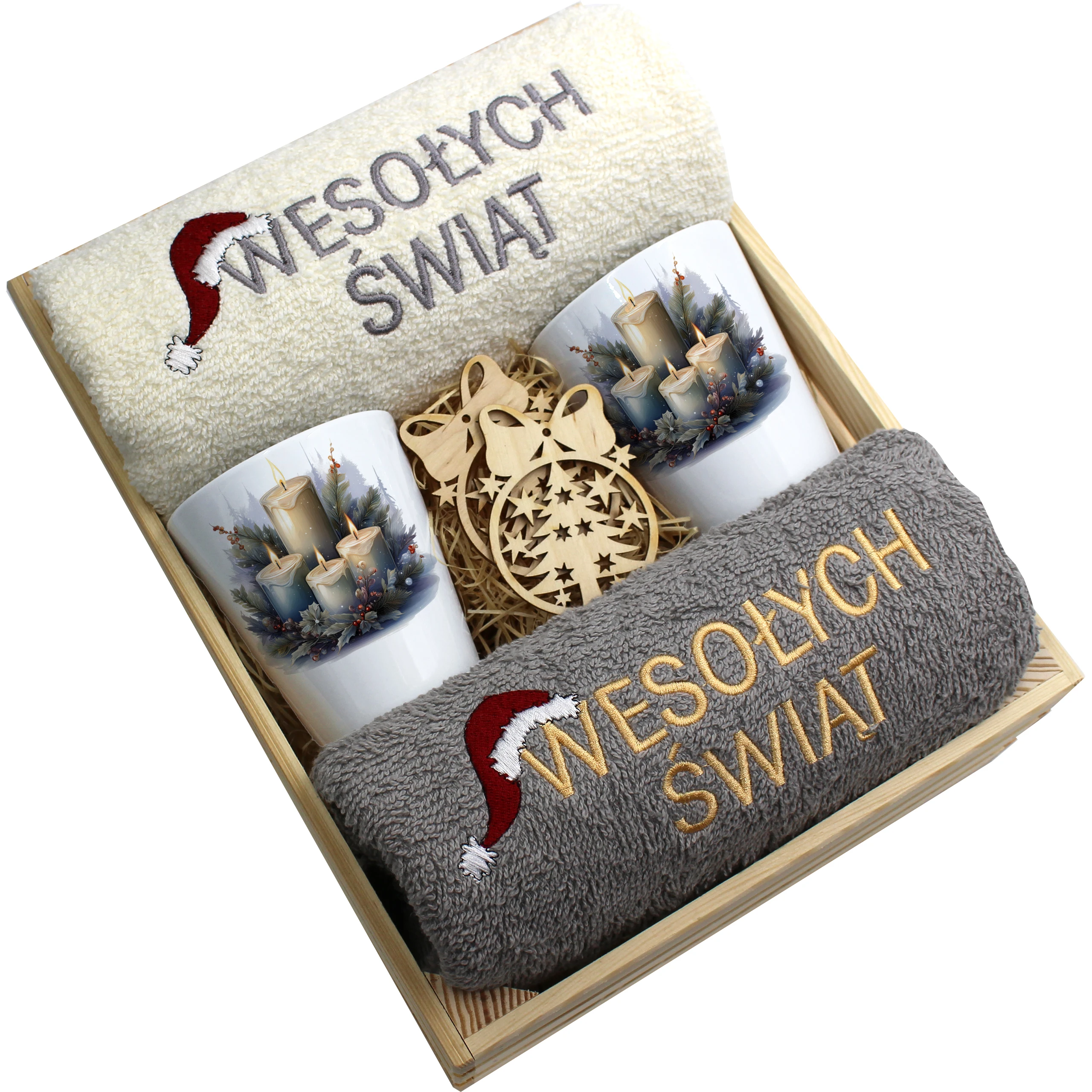 Każdy zestaw ręczników wraz z kubkami jest zapakowany w folię - celofan - zestaw tworzy gotowy prezent do podarowania bez potrzeby dalszego pakowania.