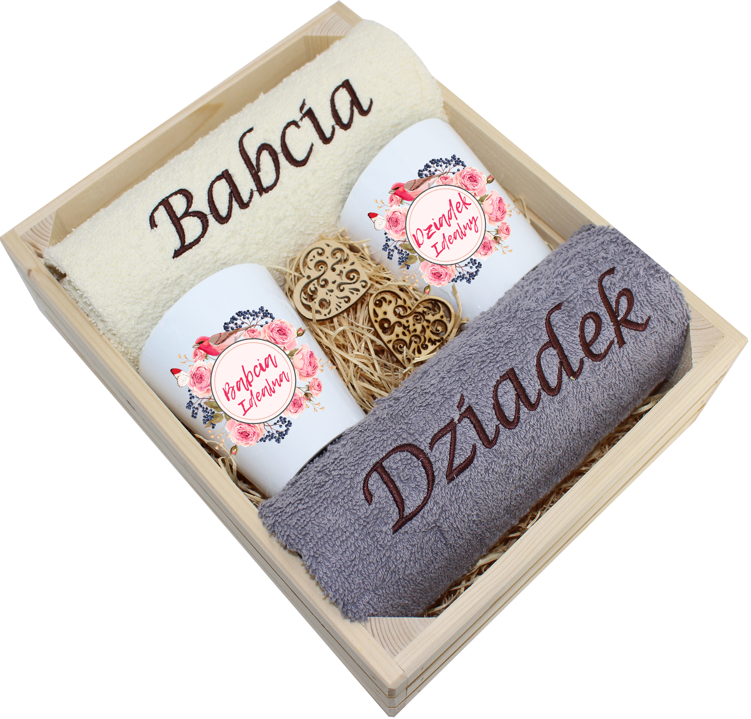 Każdy zestaw ręczników wraz z kubkami jest zapakowany w folię - celofan - zestaw tworzy gotowy prezent do podarowania bez potrzeby dalszego pakowania.